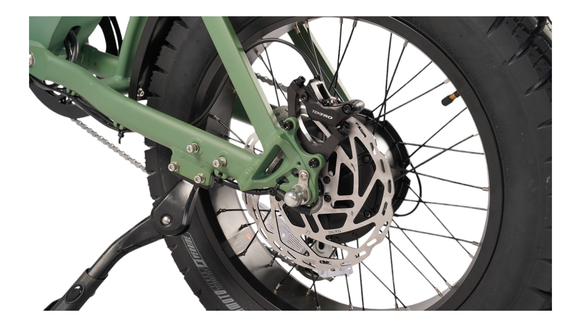 Class leading stopping power. All our bikes come with the latest Tektro E3940 4-Piston Hydraulic brakes and huge 203mm rotors
